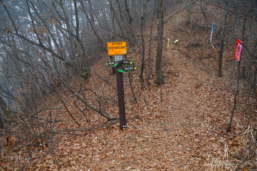삼각점과 이정표가 세워진 삼거리에서