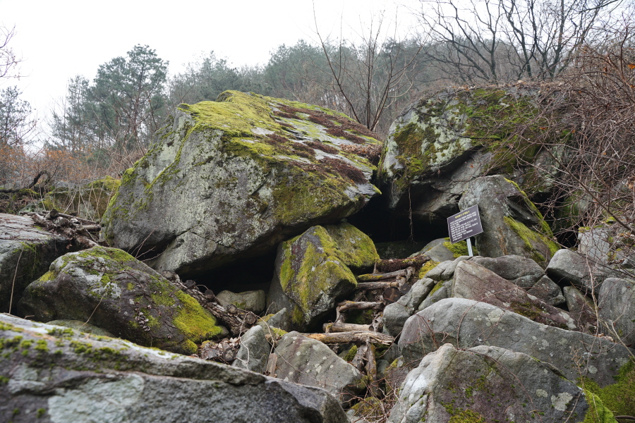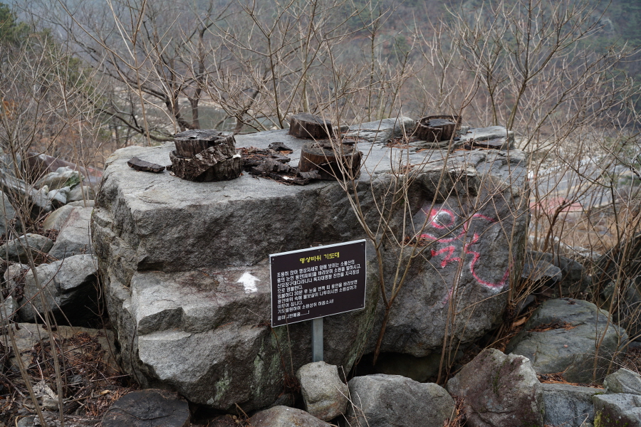 큰 암벽 밑의 현위치 1번 사각기둥에서