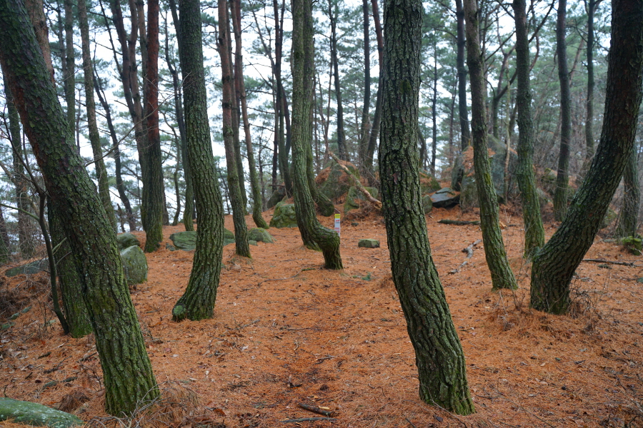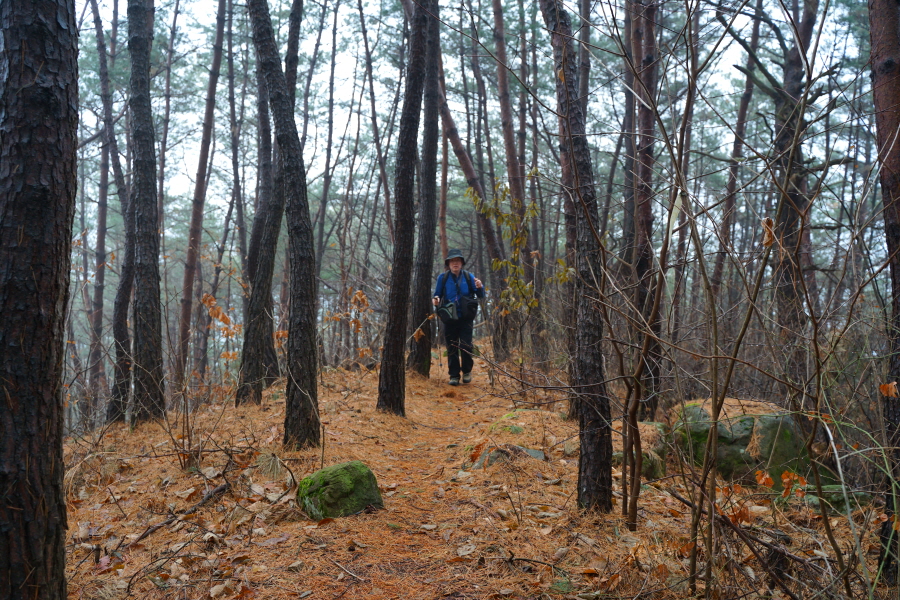 소나무 숲을 내려갑니다.