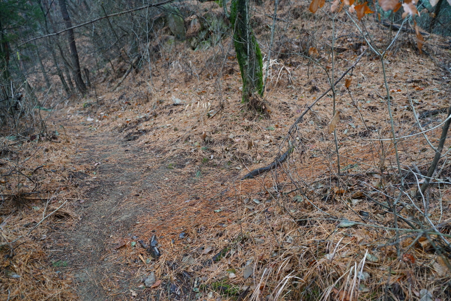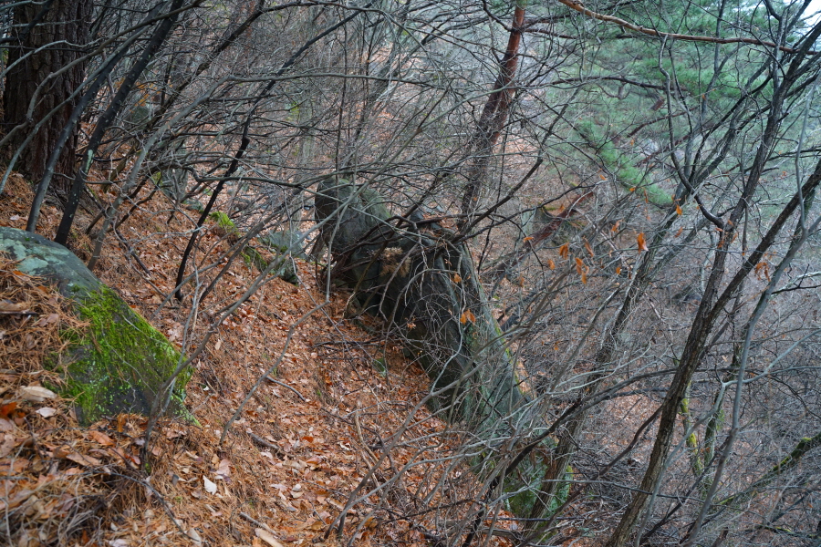 바로 뚜렷한 길을 만나 오른쪽으로 산허리를 돌아