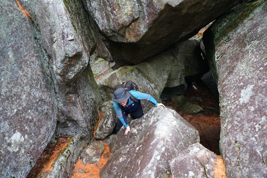 바위를 내려섰다 다시 바위를 붙잡고