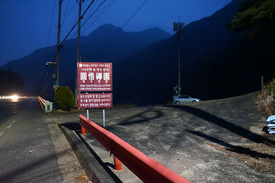용문2교를 지나 나오는 원오선원 안내판 왼쪽에 악견산주차장이 있습니다.