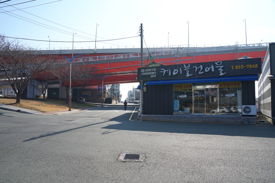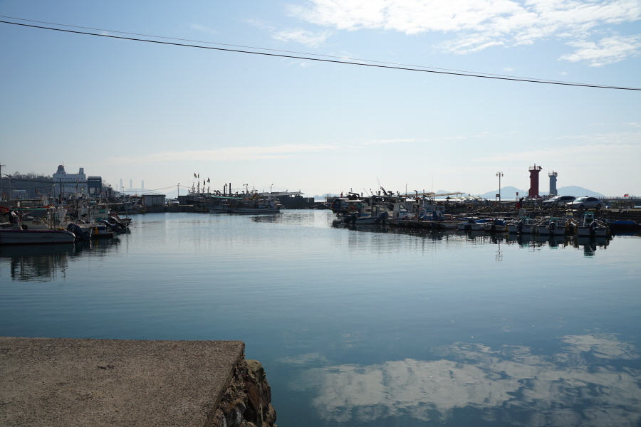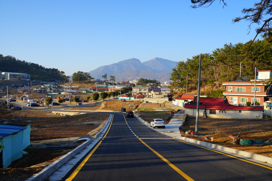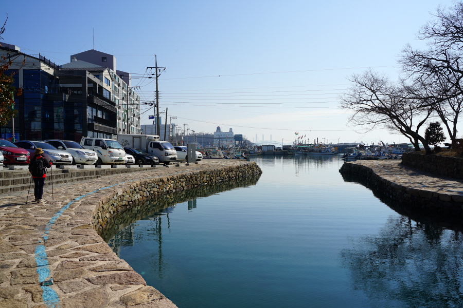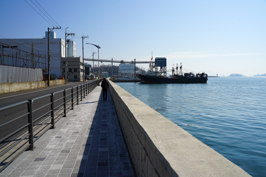 신항로(0.5㎞) 방향 도로를 갑니다.