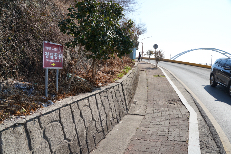 (경남여행/사천여행)삼천포항 바다 조망과 봄볕이 좋았던 풍차전망대 청널공원 여행. 사천 청널공원 삼천포유람선선착장을 지나면 도로가 굽어지면서 청널공원 안내판이 나옵니다. 청널공원