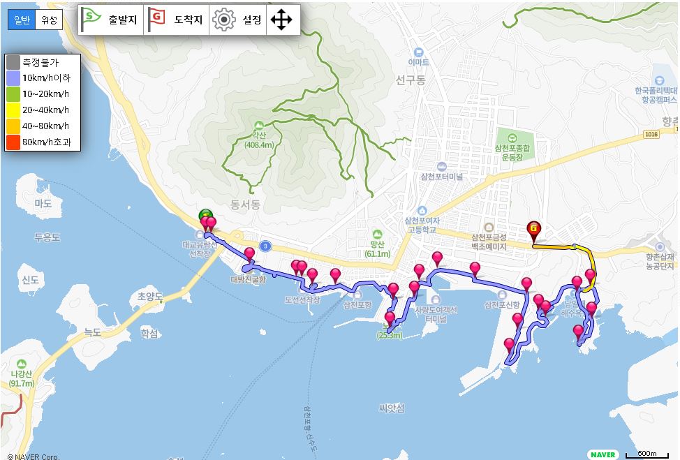 삼천포전통수산시장~삼천포용궁수산시장~노산공원~금홍교~삼천포항~