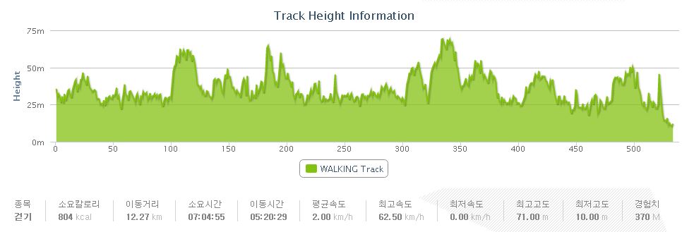 둘레길 거리는 약 10.5㎞ 이며. 3시간 30분 안팎이 걸립니다.