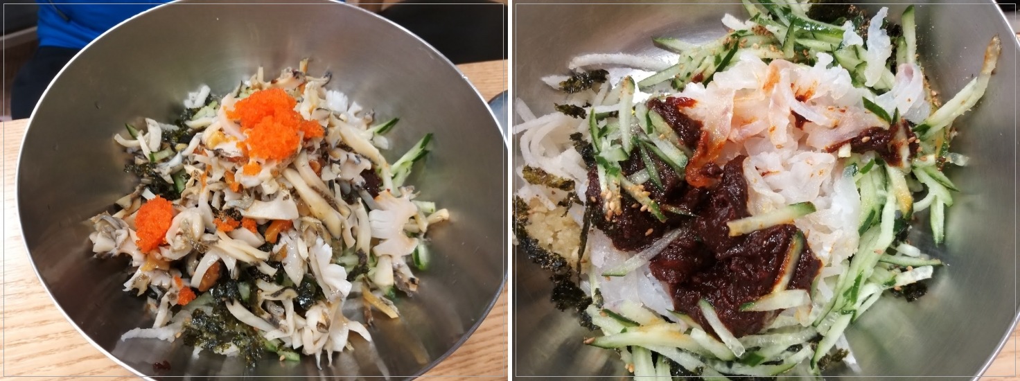 (포항맛집)전통 고추장에 비벼 먹는 맛있는 포항물회 새포항물회. 포항 새포항물회