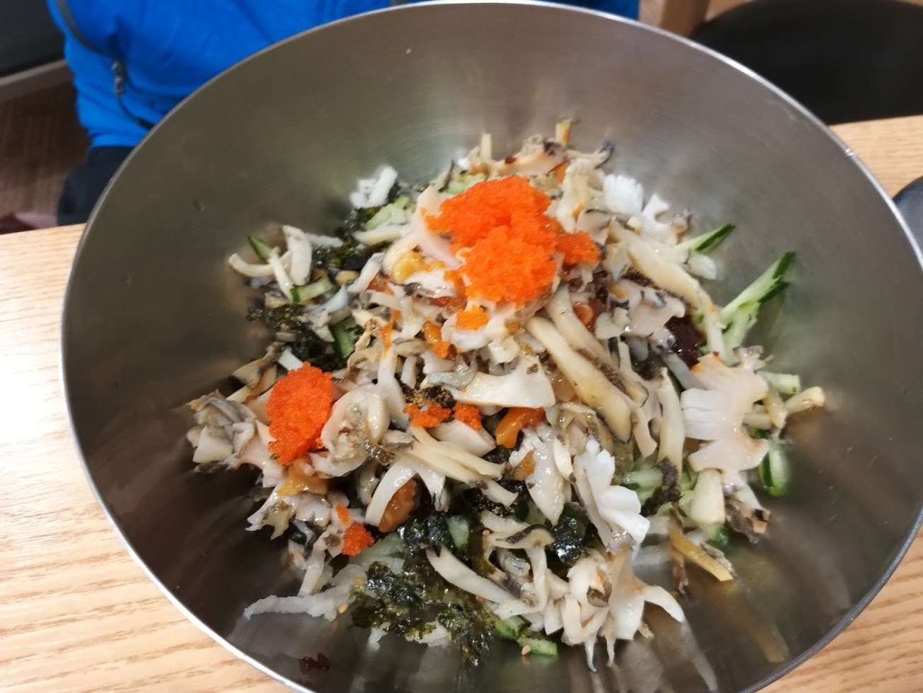 일행은 전복물회로 했습니다.