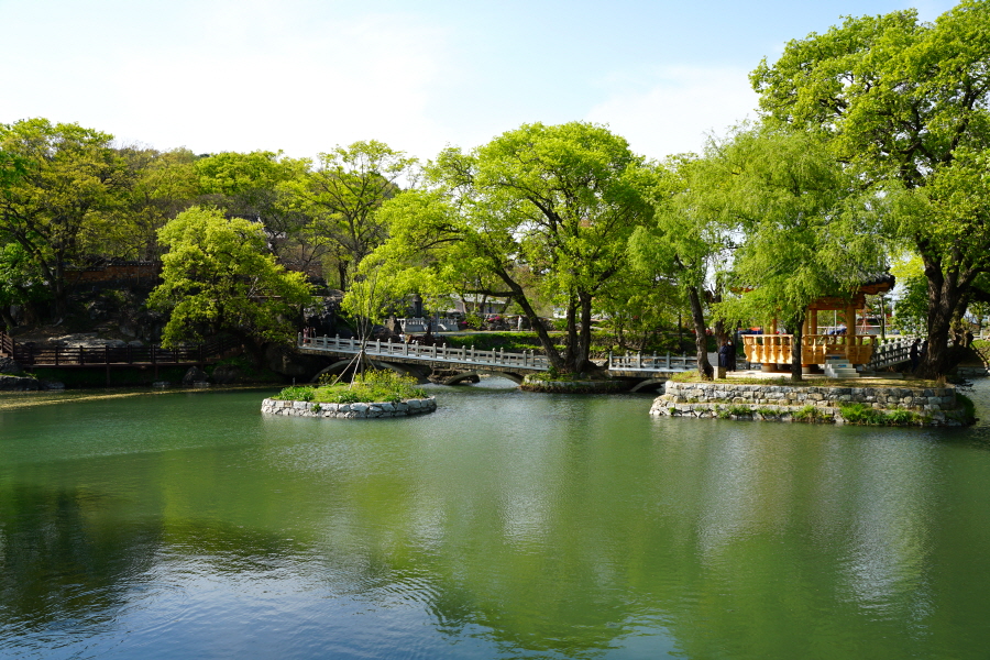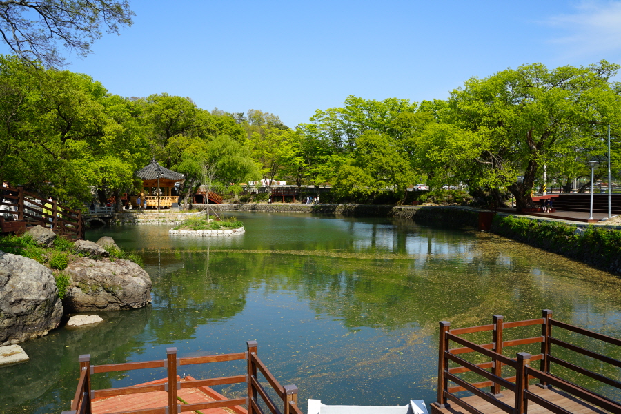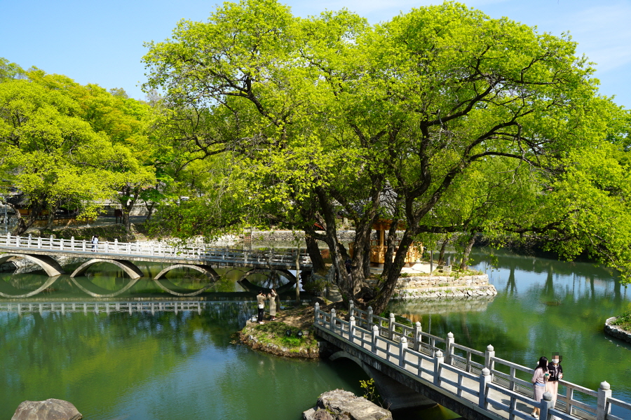 그 앞의 너른 연못과 옆못 주위에 심어진