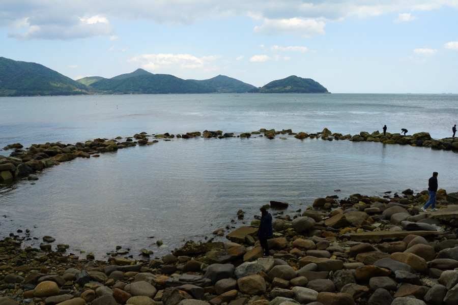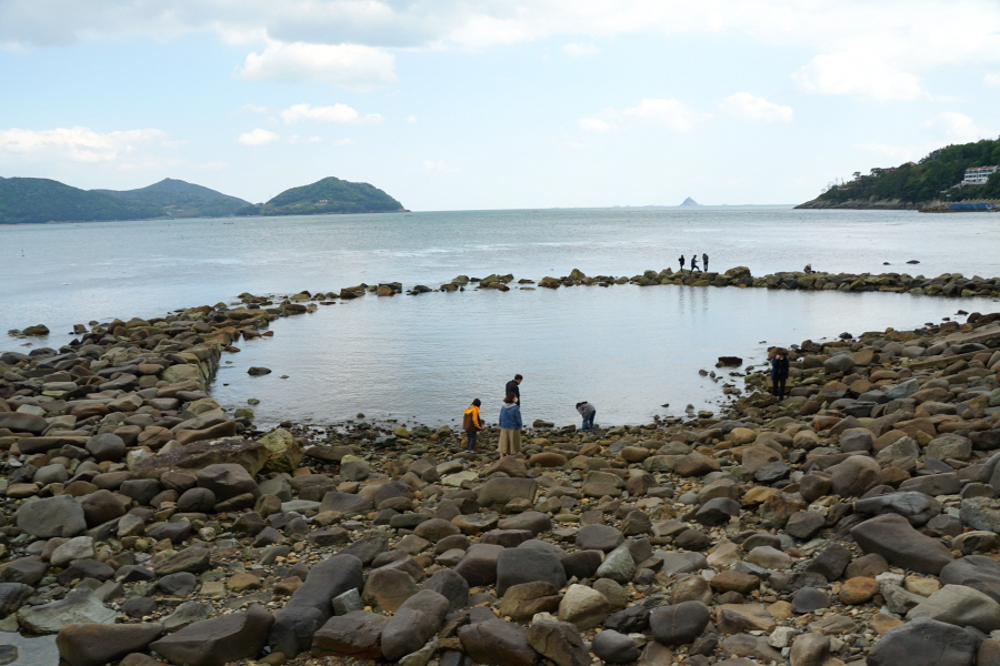 해안에다 돌담을 쌓은 뒤 썰물 때 갇힌 물고기를 잡는 방식인데