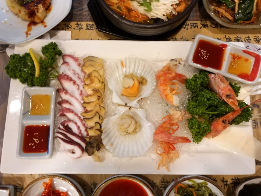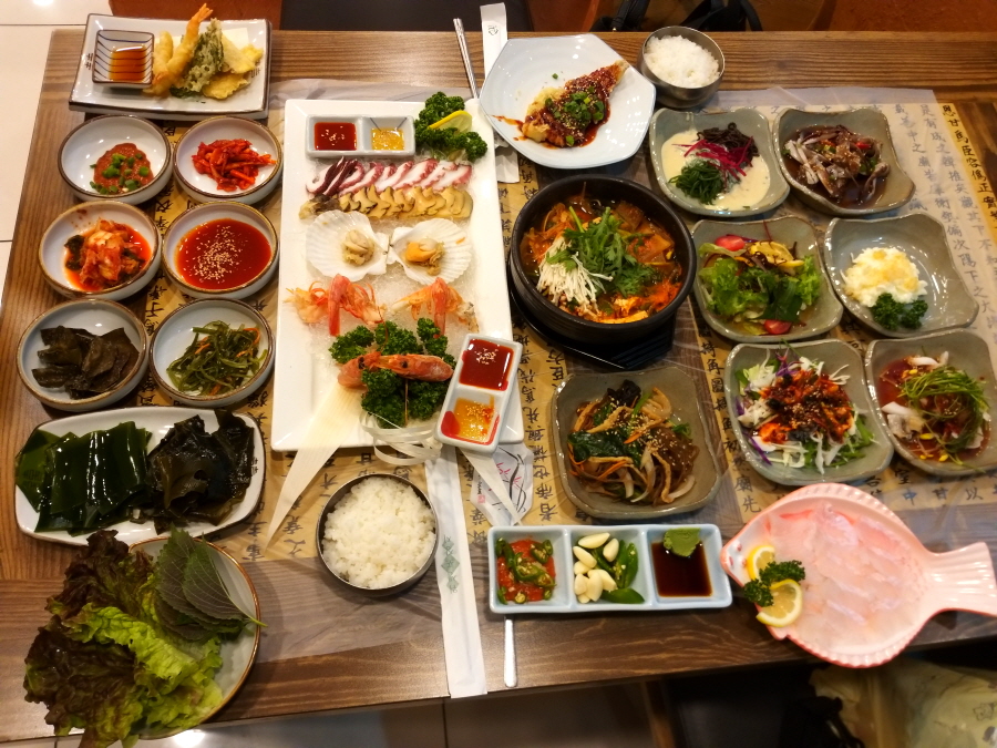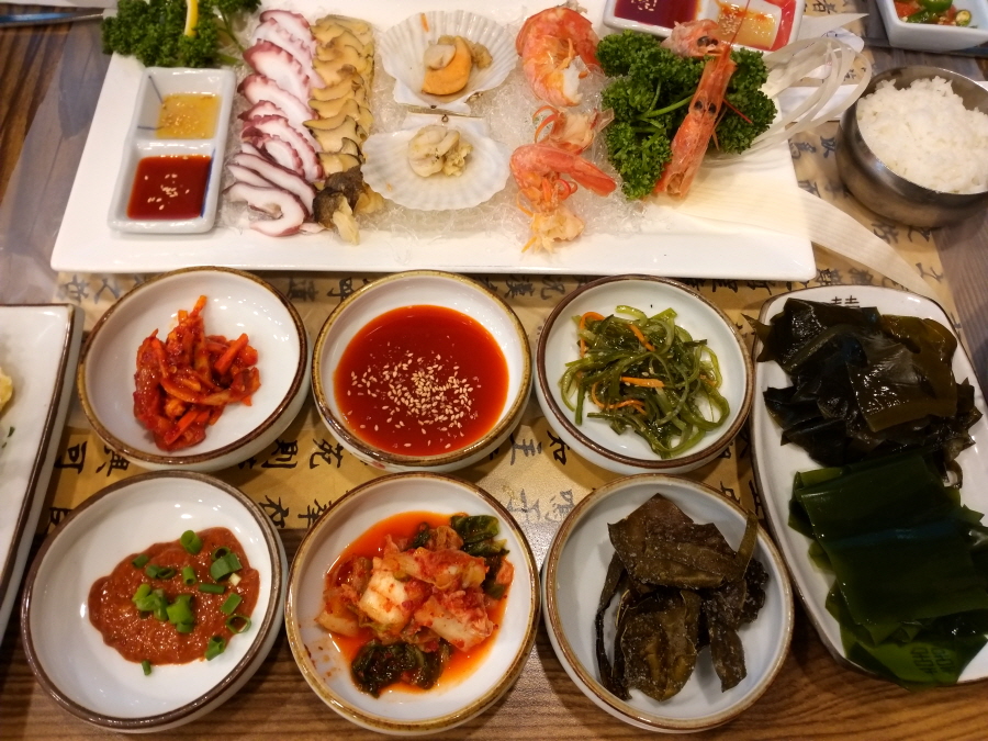 해산물 정식(찬음식+더운음식+해산물 숙회+해물 뚝배기) 17,000원,