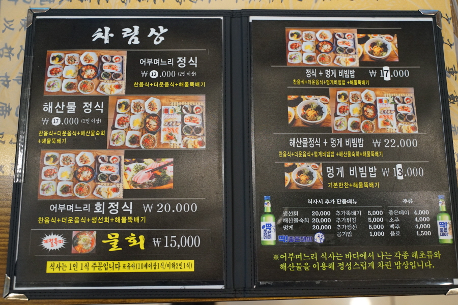 멍게+멍게비빔밥 17,000원, 해산물+멍게비빔밥 22000원,