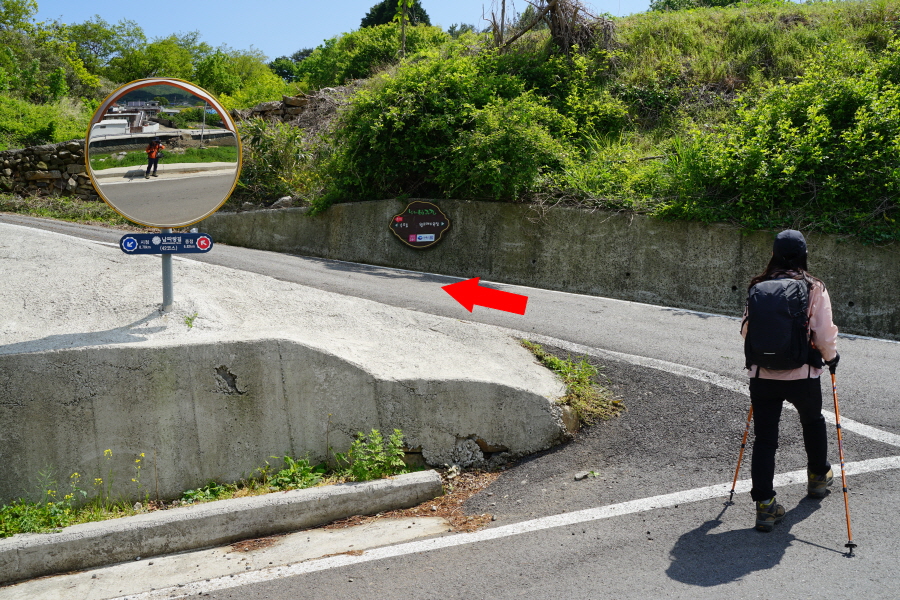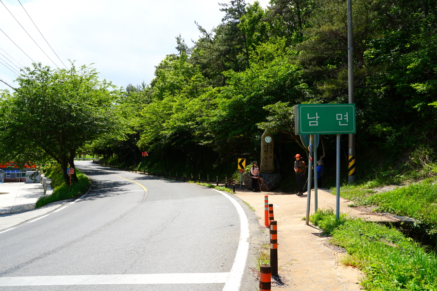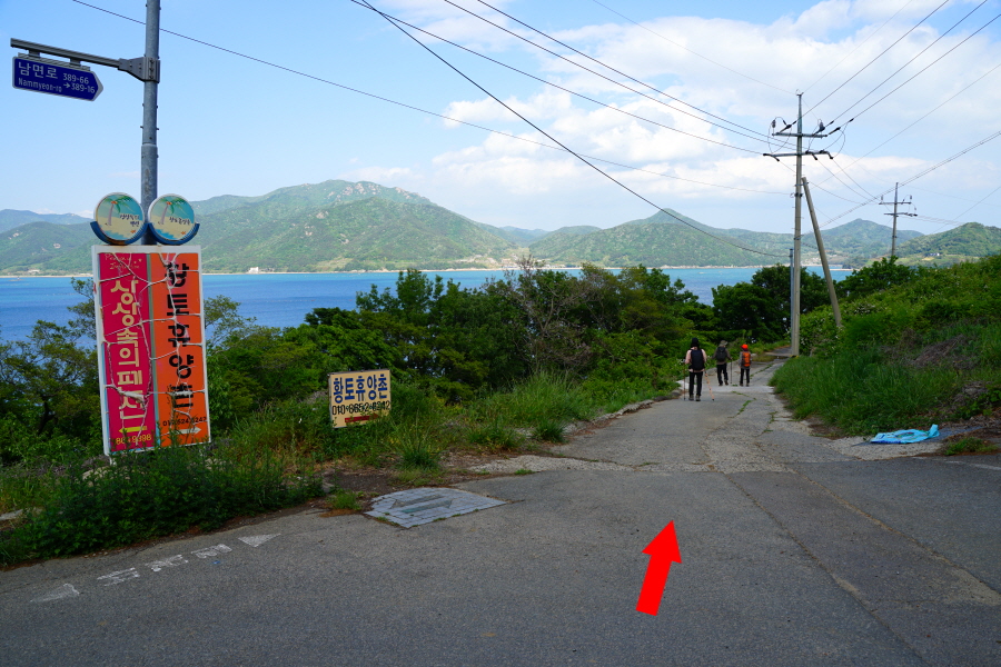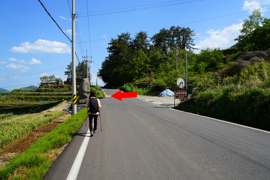 월포해수욕장 갈림길~도로(남해 37㎞·남면3㎞)표지판 갈림길~남면 표석~