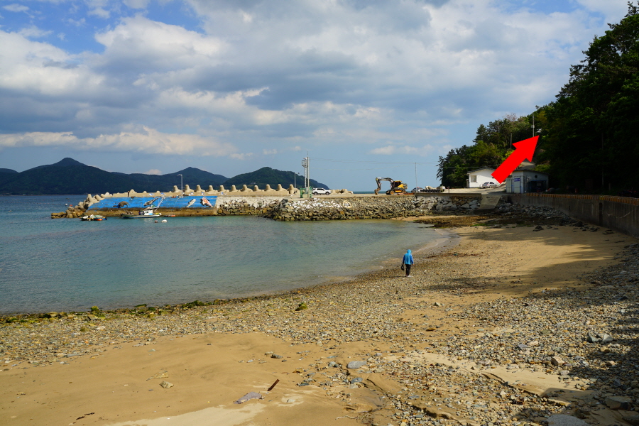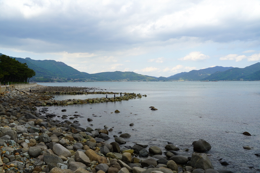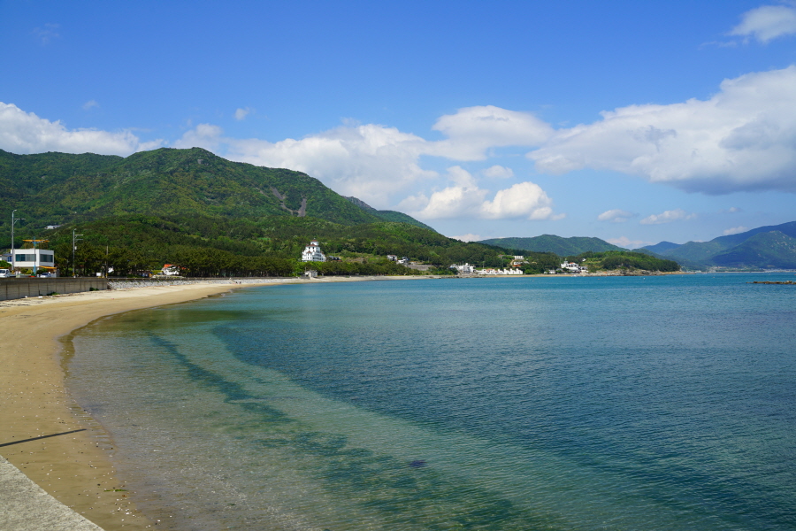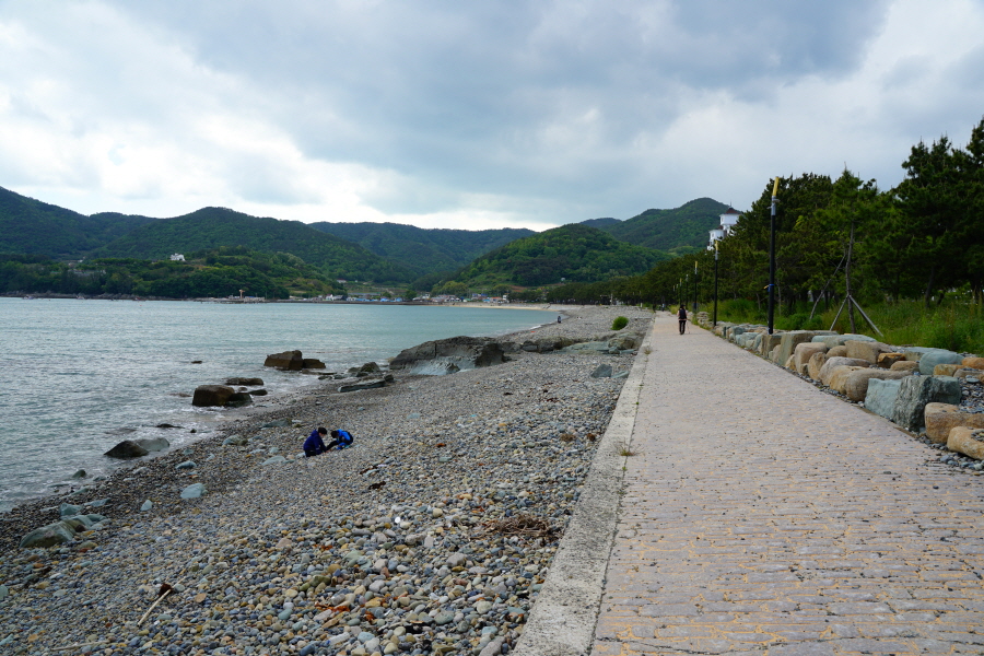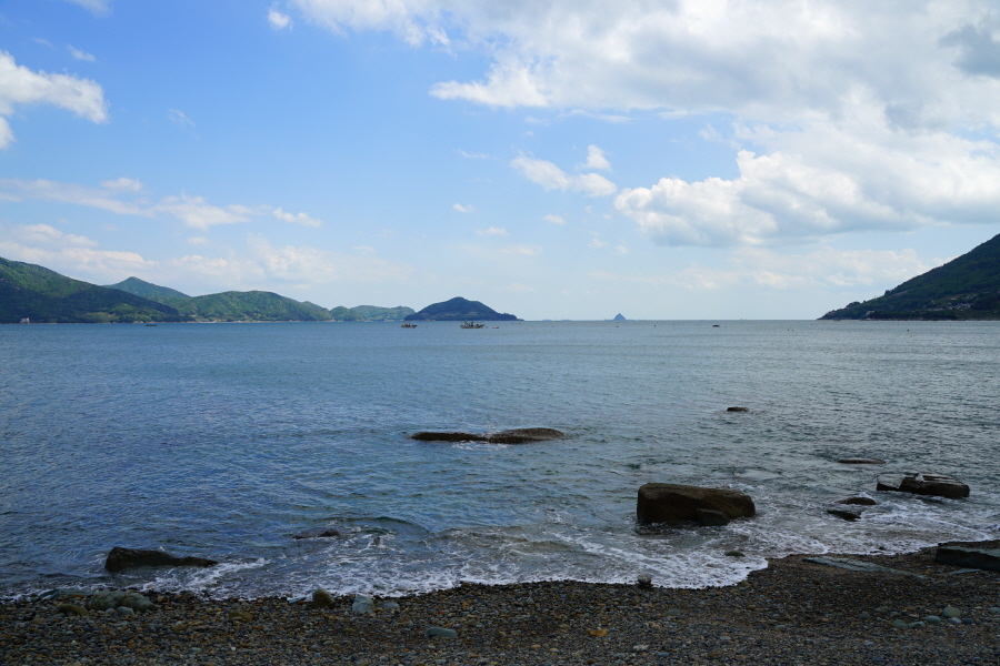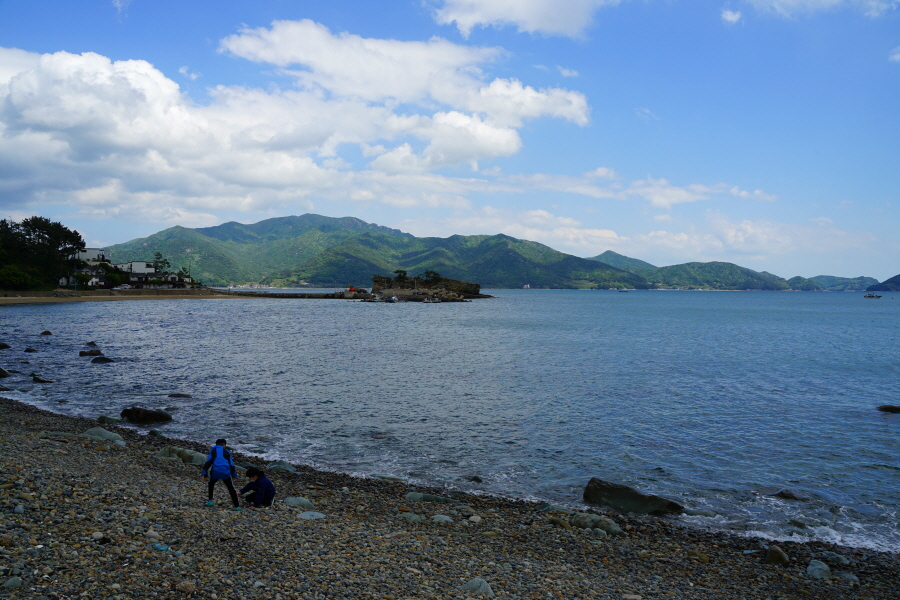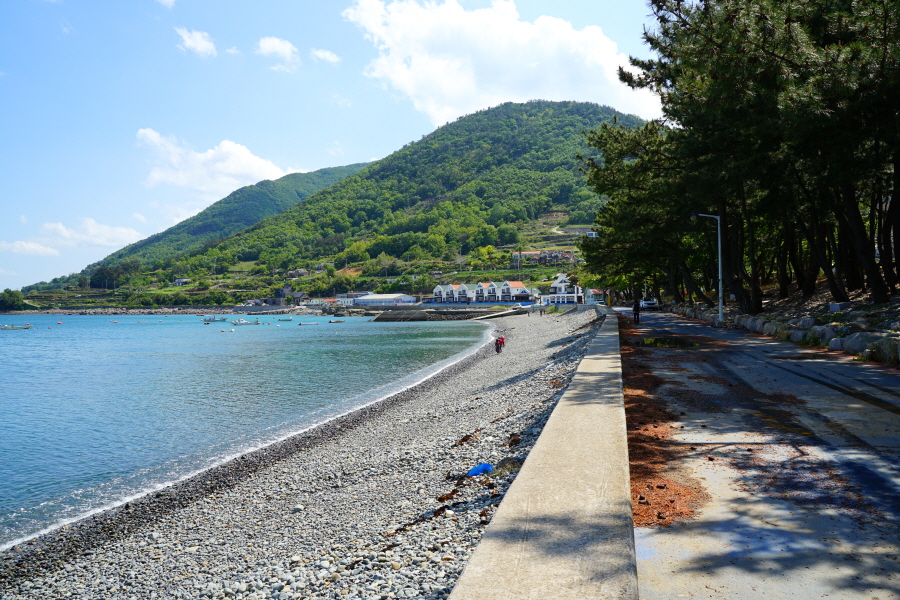 크고 작은 몽돌이 깔린 두곡해수욕장과