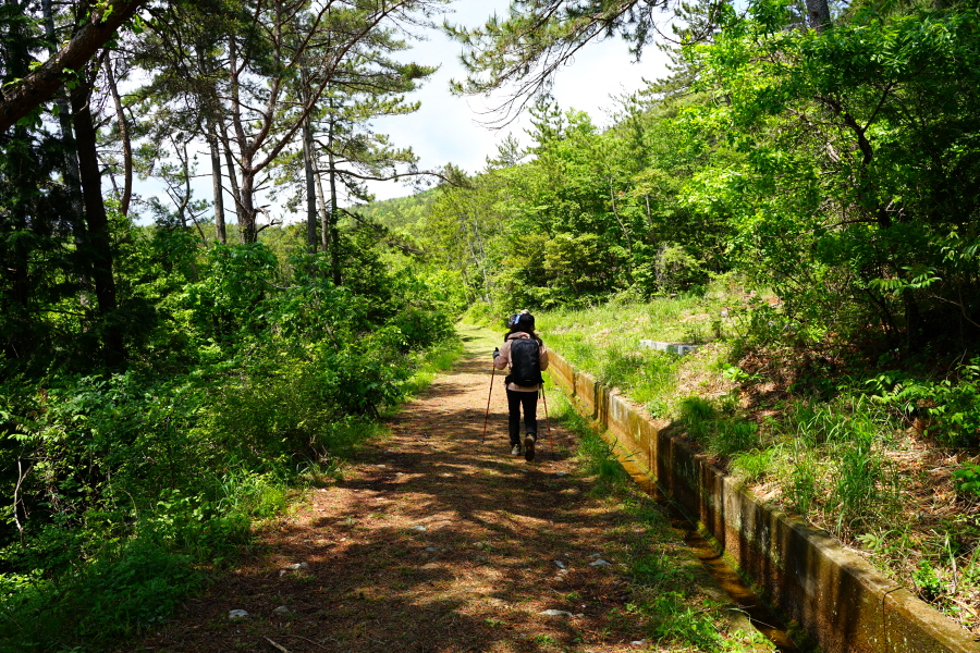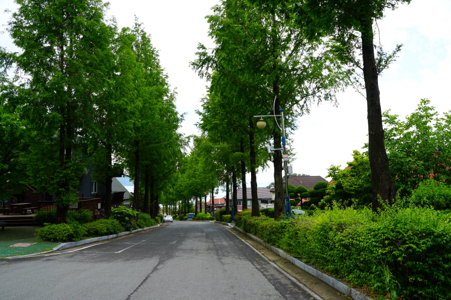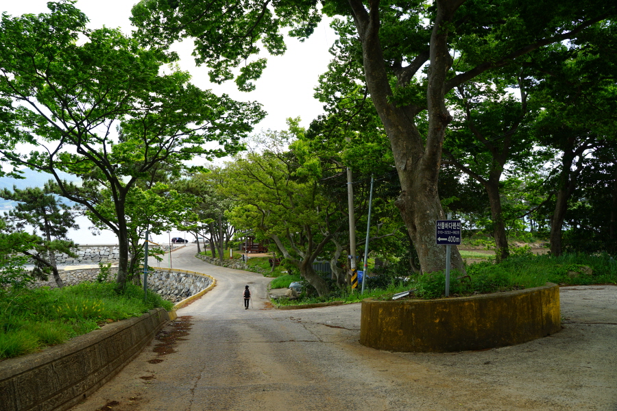 마을 가운데로 난 편백숲 도로를 올라갑니다.