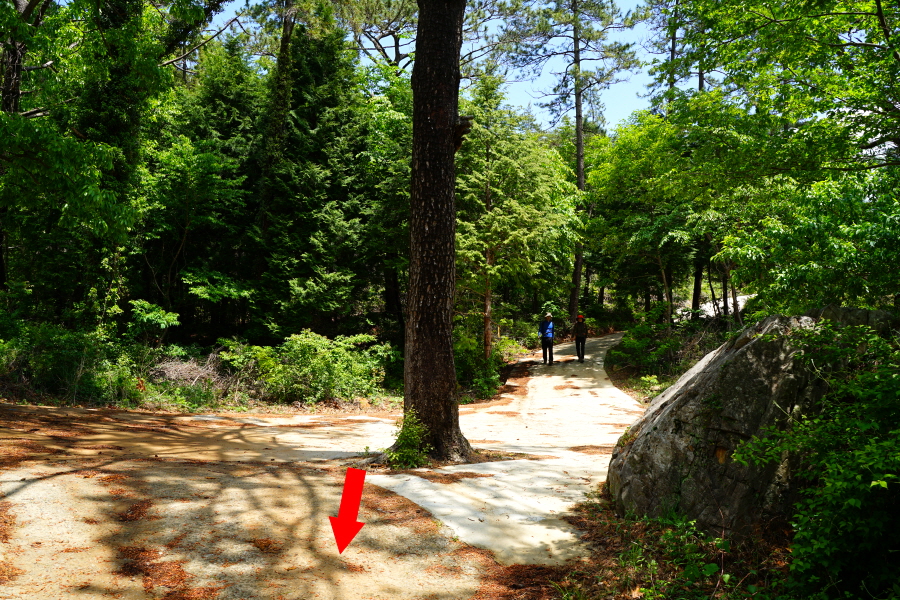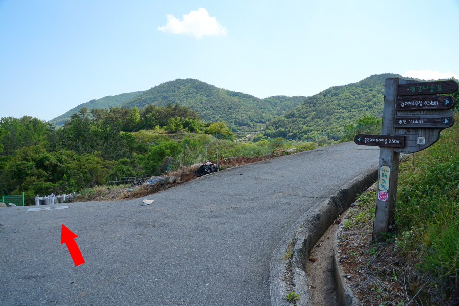 그 앞 갈림길에서 왼쪽으로 갑니다.