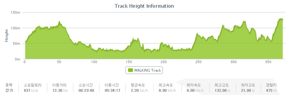 둘레길 거리는 약 11㎞이며. 4시간 안팎이 걸립니다.