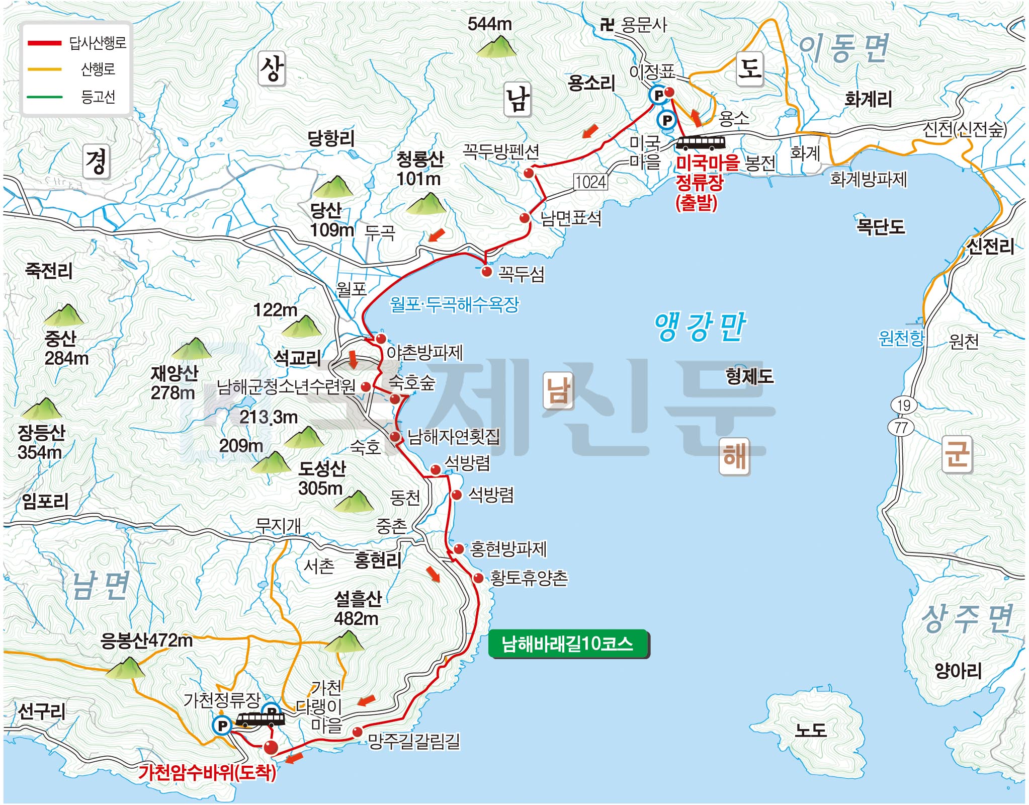 10코스는 취재팀이 이번에 답사했던 앵강다숲길(17.7㎞)이며,