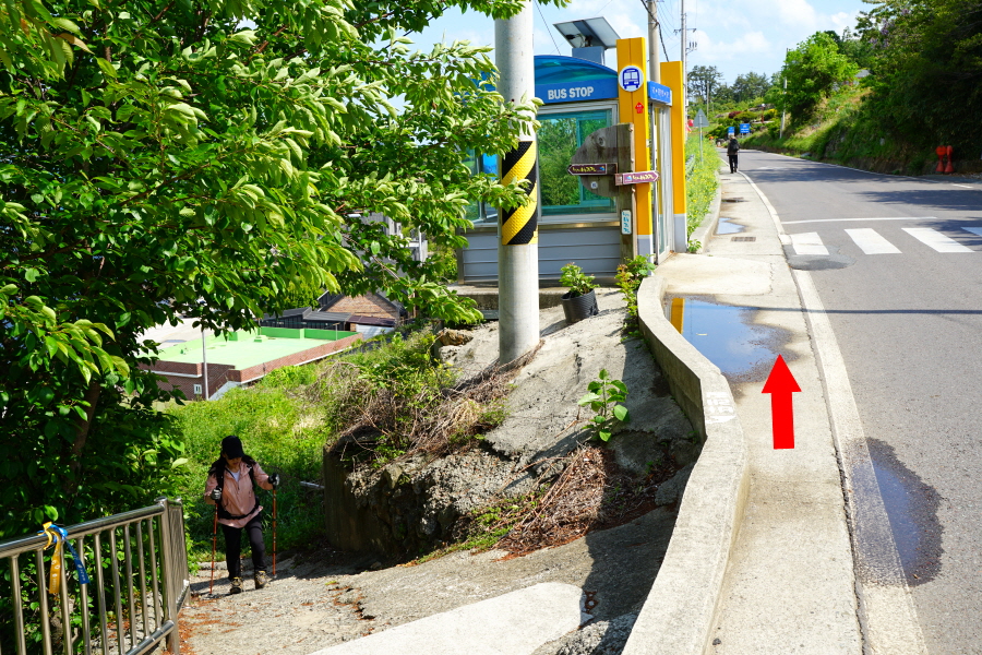 홍현(제1반)버스정류장과 전망 덱을 지나