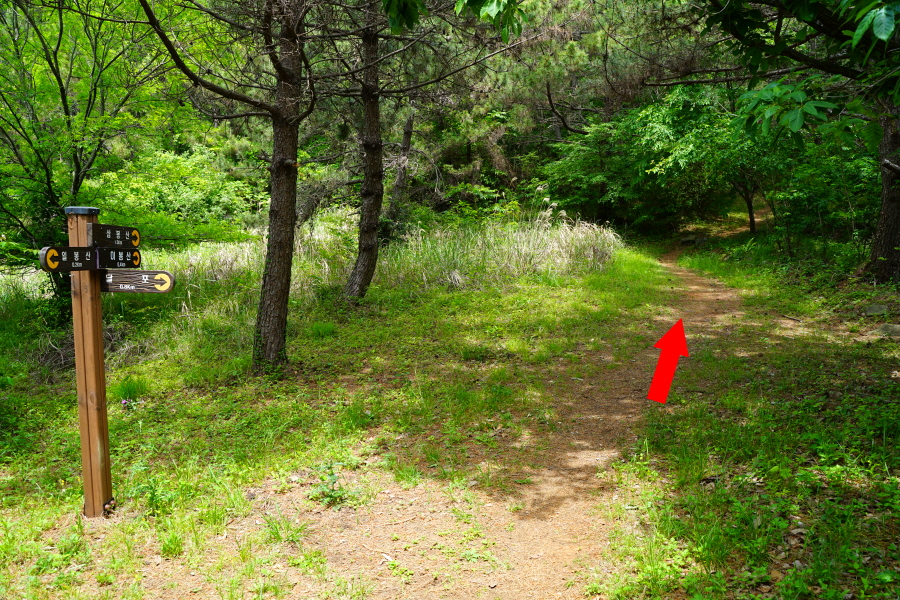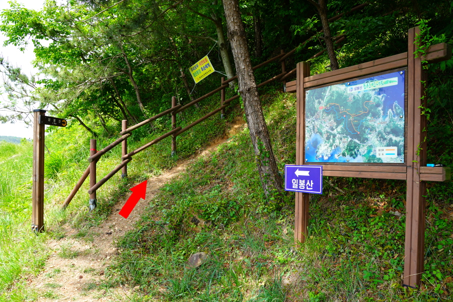 이봉산(0.6㎞)·삼봉산(1.4㎞)은 직진합니다.