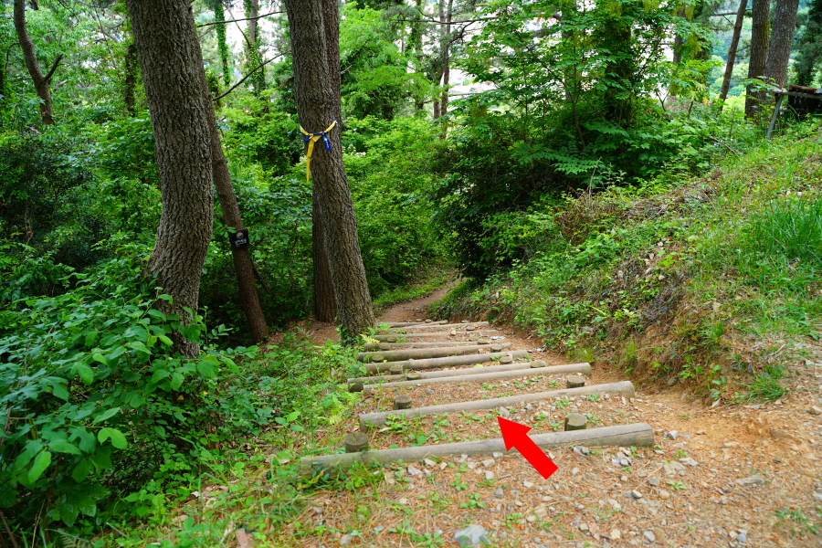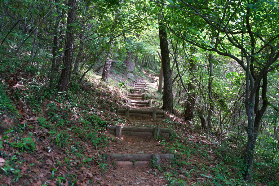 10분 쯤 산비탈의 울창한 숲길을 오르면