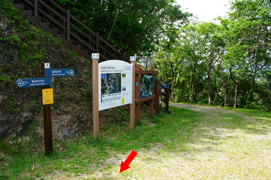 용남면사무소로 돌아가는 산길이 대표적이지만