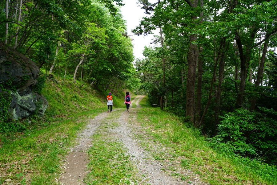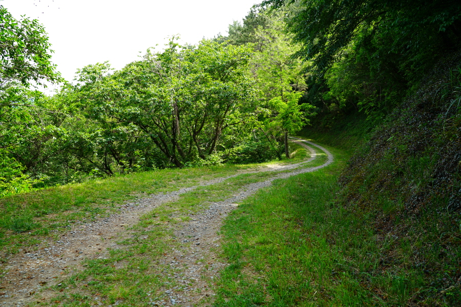 왼쪽으로 크게 꺾어 산사면을 완만하게 내려가면