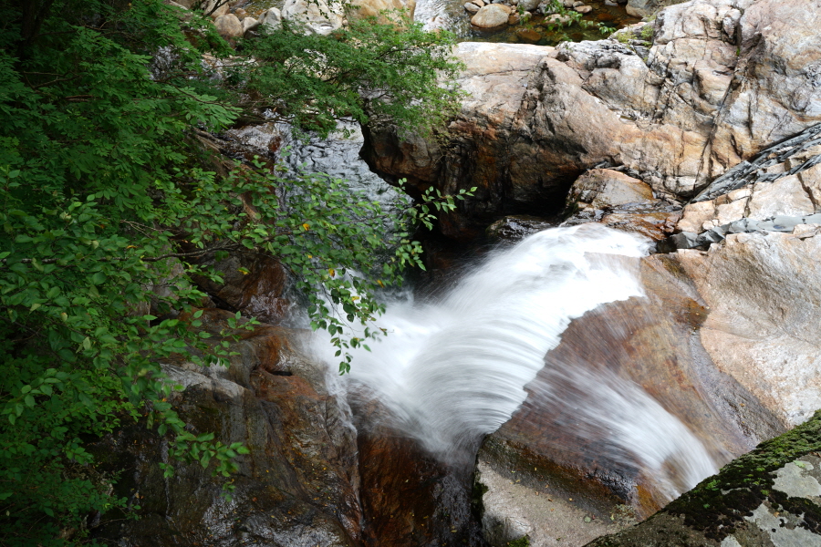 암반을 타고 구르는 물방울이 모여 내는