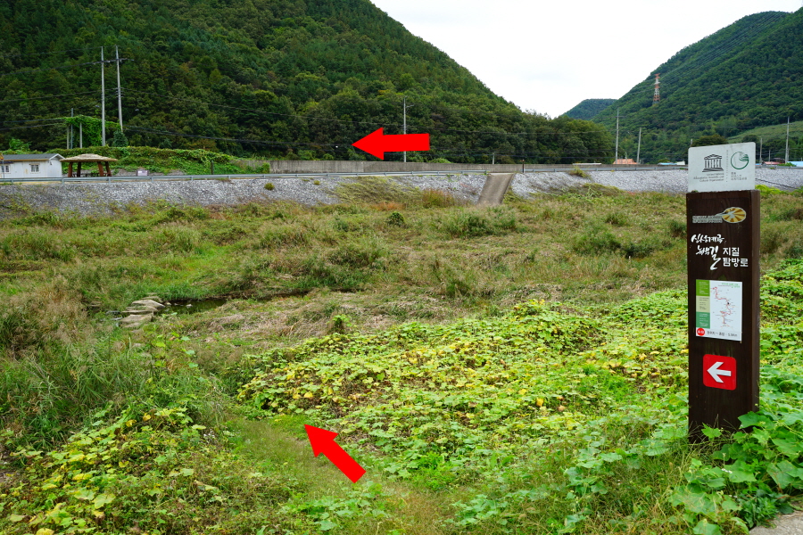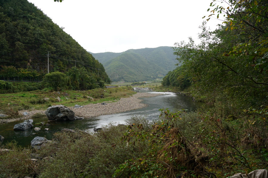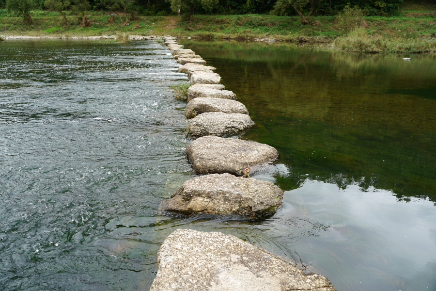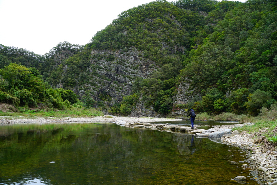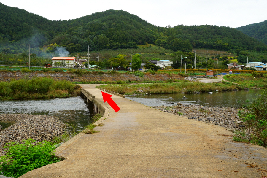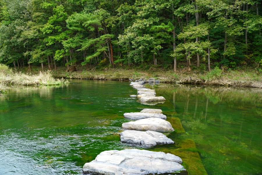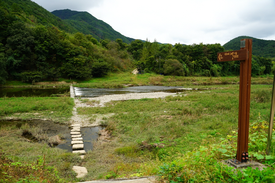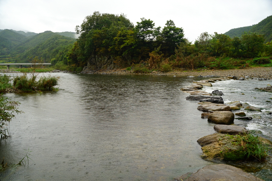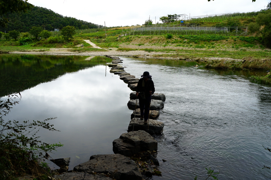 오른쪽 개울에 놓인 징검다리를 건너는데
