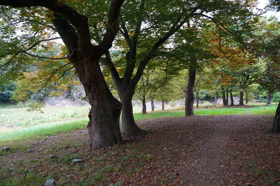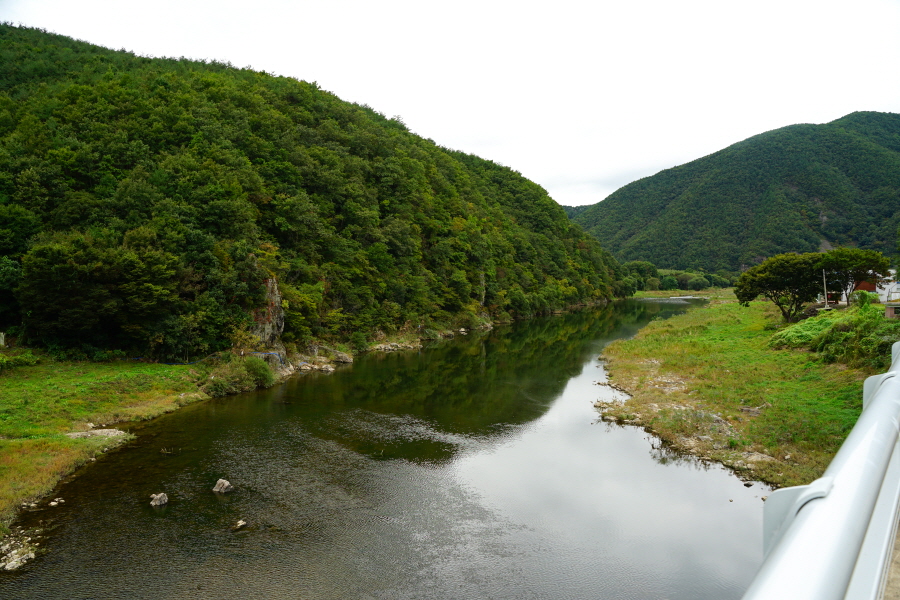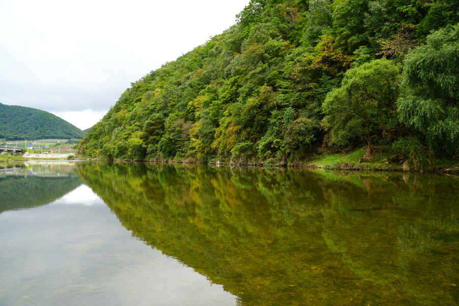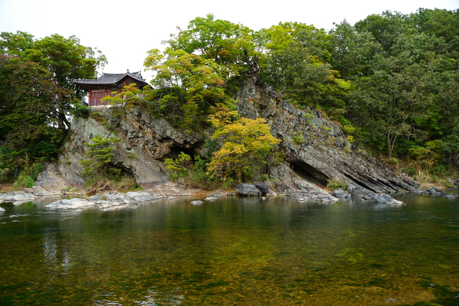 필자는 설악산에서 단풍이 남하했다는 반가운 소식을 듣고는 경북 청송군의 신성계곡을 찾았습니다. 붉고 노란 단풍이 내려앉은 신성계곡과 방호정 만안자암 백석탄을 보기 위해서입니다. 그러나 급한 마음에 찾았던 신성계곡 지질 탐방로 녹색길에서 필자는 붉게 물든 단풍은 만나지 못했습니다. 지금쯤이면 신성계곡에 단풍이 들었을 것으로 보입니다. 청송하면 떠오르는 게 주왕산국립공원인데 군에서 선정한 8경에 주왕산이 당연히 1경에 이름을 올렸다고 생각했습니다. 그런데 그게 아니었습니다. 청송 1경은 일반인에게는 생소한 신성계곡이었습니다. 신성계곡은 청송군 현서면 월정리에서 시작하는 길안천의 한 부분으로 신성리 방호정에서 고와리 백석탄에 이르는 약 10㎞ 계곡을 말합니다. 감입곡류 하며 산비탈을 깎아 만든 암반과 암벽은 유네스코 세계 지질공원에 이름을 올렸을 만큼 비경이 펼쳐집니다. 신성계곡 녹색길은 3구간으로 나뉩니다. 1구간은 ‘방호정 효길’로 신성교에서 헌실 쉼터까지인데, 거리는 4.2㎞에 방호정과 한반도 지형을 지나가며 약 1시간 20분이 걸립니다. 2구간은 ‘자암 적벽길’로 헌실 쉼터에서 반딧불 농장까지입니다. 거리는 다소 짧은 2.9㎞, 1시간 거리인데 만안자암 단애와 길안천으로 흘러내린 사자바위가 볼거리입니다. 3구간은 ‘백석탄 길’로 반딧불 농장에서 솔고개 목은제 휴게소까지 걷습니다. 청송의 특산품인 사과밭과 ‘흰 바위 여울’이라는 백석탄를 지나는데 4.7㎞ 거리에 1시간 40분이 걸립니다. 3코스는 거의 평지 길로 자신의 체력에 맞게 걸으면 됩니다. 어린이를 동반한다면 1·2 구간을 추천하며 3구간은 돌길이 많아 백석탄은 승용차로 이동합니다. 필자는 3구간을 연결해 걸은 뒤 1구간 인근의 한반도 지형 전망대와 신성리 공룡발자국을 찾았습니다. 한반도 지형 전망대는 입구에서 약 160m 산비탈을 올라야합니다. 공룡발자국은 2003년 태풍 매미 때 산사태로 들어났습니다. 단일 지층면에서는 국내 최대라 합니다. 신성계곡 녹색길은 이정표와 안내판이 잘 되어 있습니다. 징검다리를 여러 번 건너야 하는 만큼 이끼나 물에 미끄러지지 않도록 합니다.
