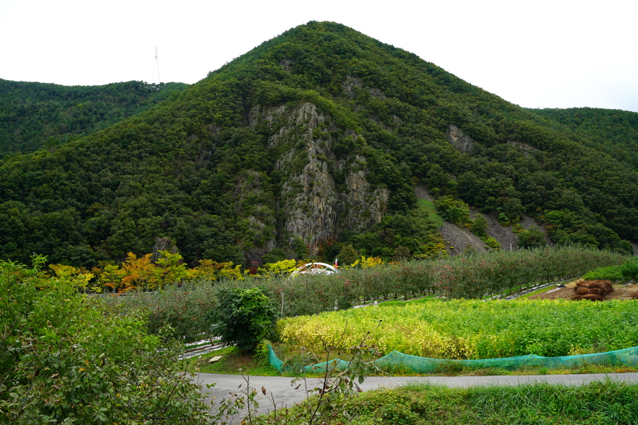 청송 특산물인 사과밭을 끼고 가던 둑길은