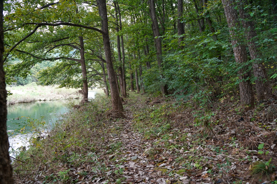 한 사람이 겨우 다닐만한 울퉁불퉁한 계곡 길로