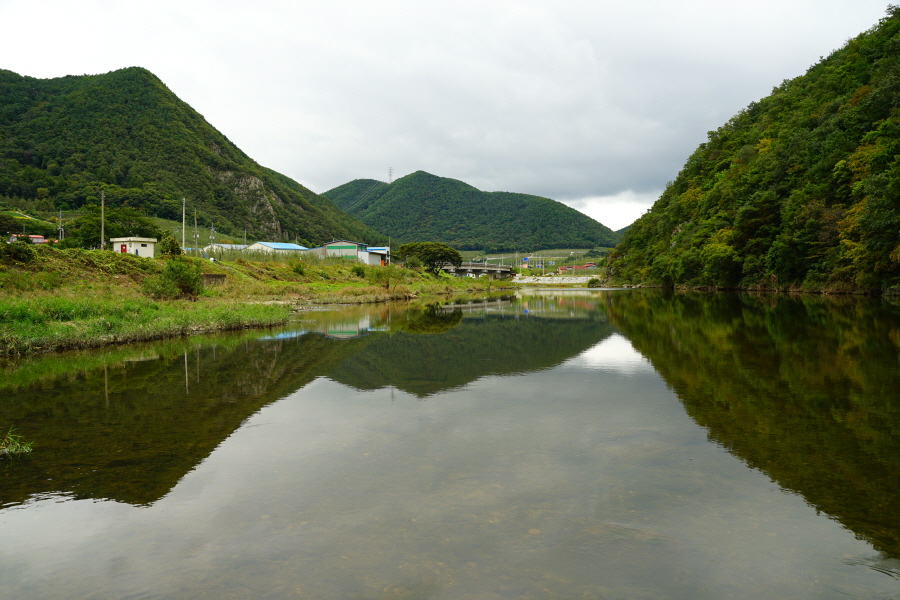 물길이 굽어 돌면서 깊은 웅덩이를 만들었는데