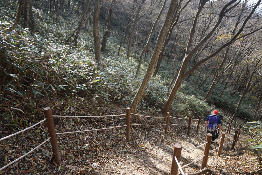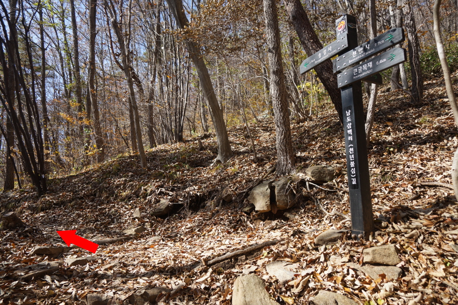 돌·침목 계단을 내려가면 첫 번째 갈림길에서