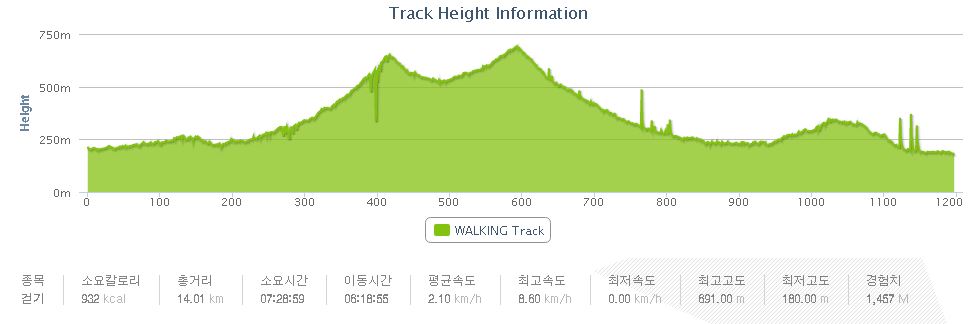 오른쪽 장군봉(4.4㎞) 방향.
