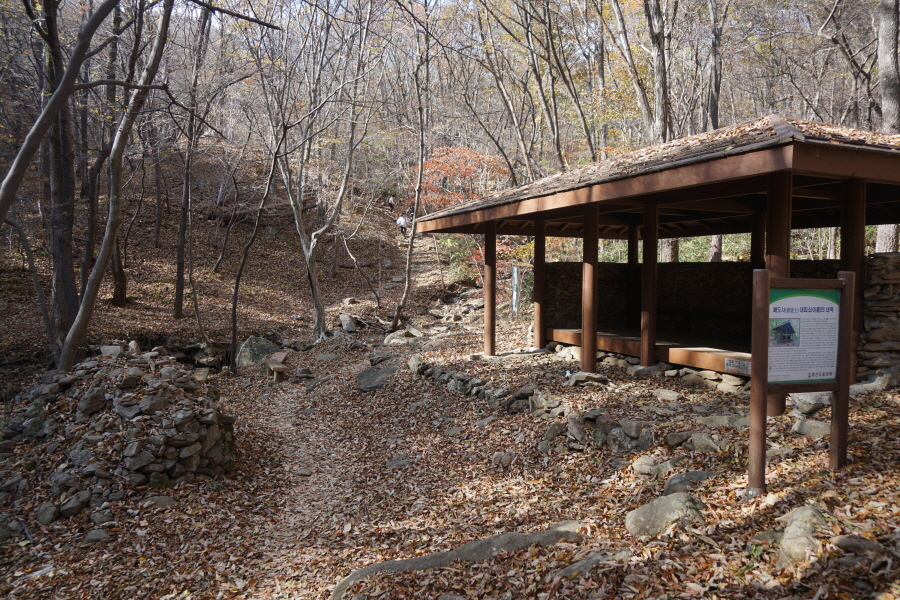천자암 갈림길을 지나 대피소에서 18분이면