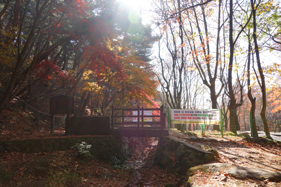 한적한 치산리 동봉 코스을 올라 염불암을 지나 코르나19’로 혼잡한 동화사 관람을 피하는 대신 팔공산에서 가장 걷기 좋은 오솔길로 하산했습니다. 이 코스는 대구 시민이 동봉으로 오를 때 즐겨 찾는다고 합니다. 치산계곡은 대중교통이 불편해 승용차를 이용했다면 동봉 정상에서 왔던 길을 다시 되짚어 하산 합니다 ‘현위치 번호 팔공 동봉 50-50’ 표지목에서 올라왔던 진불암길 대신 오른쪽 수도사(계곡) 방향으로 하산하면 됩니다. 치산계곡 원점회귀 코스로 알려진 신령재(도마재)에서 수도사로 하산하는 계곡 길은 내년 5월 15일 까지 산불예방 기간으로 입산통제 중이니 참고합니다.