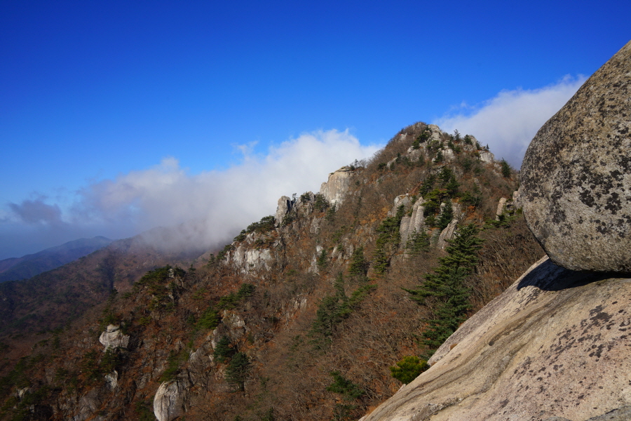 능선 좌우는 깎아 세운 바위 벼랑이지만