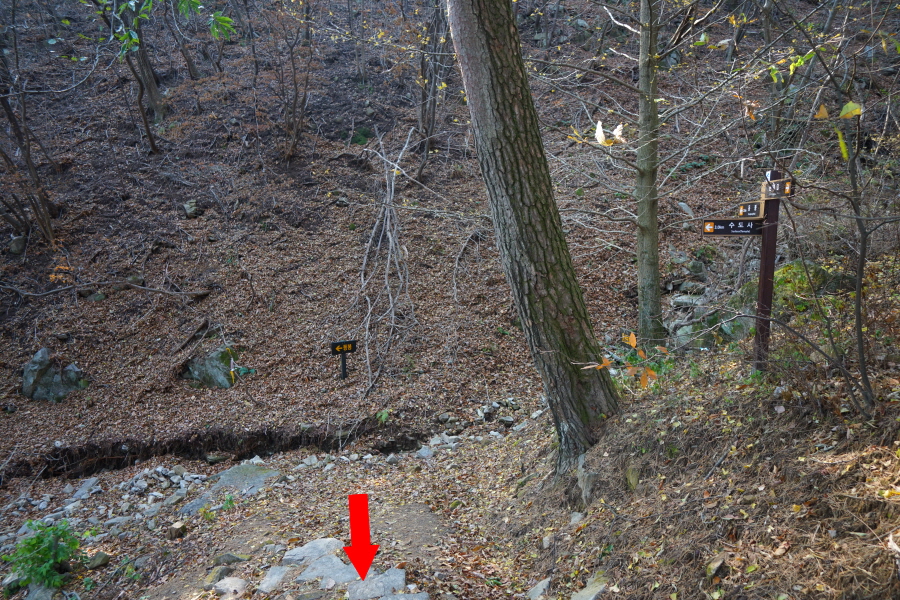 왼쪽은 수도사(계곡) 방향.