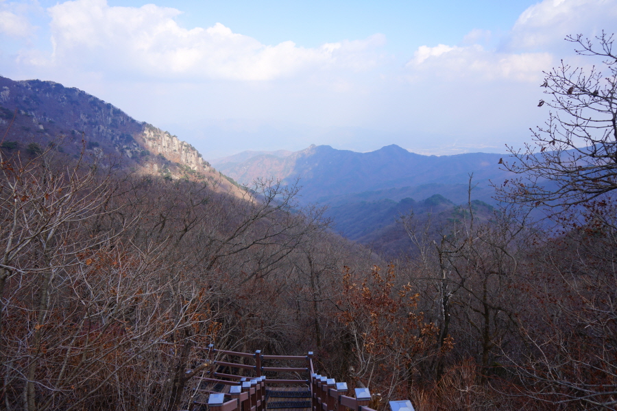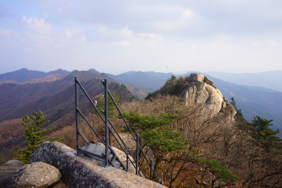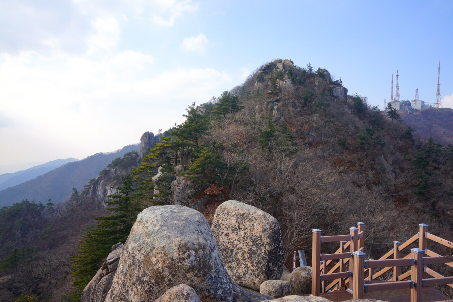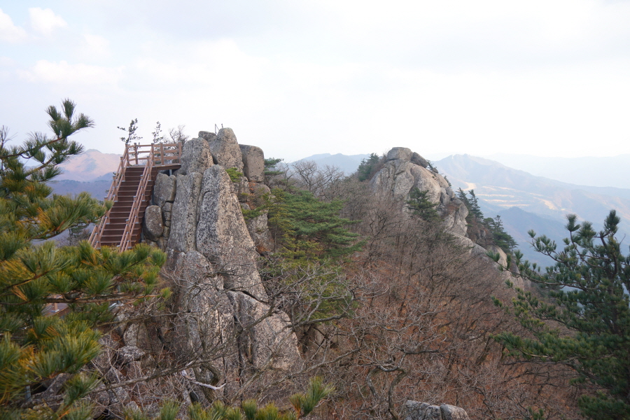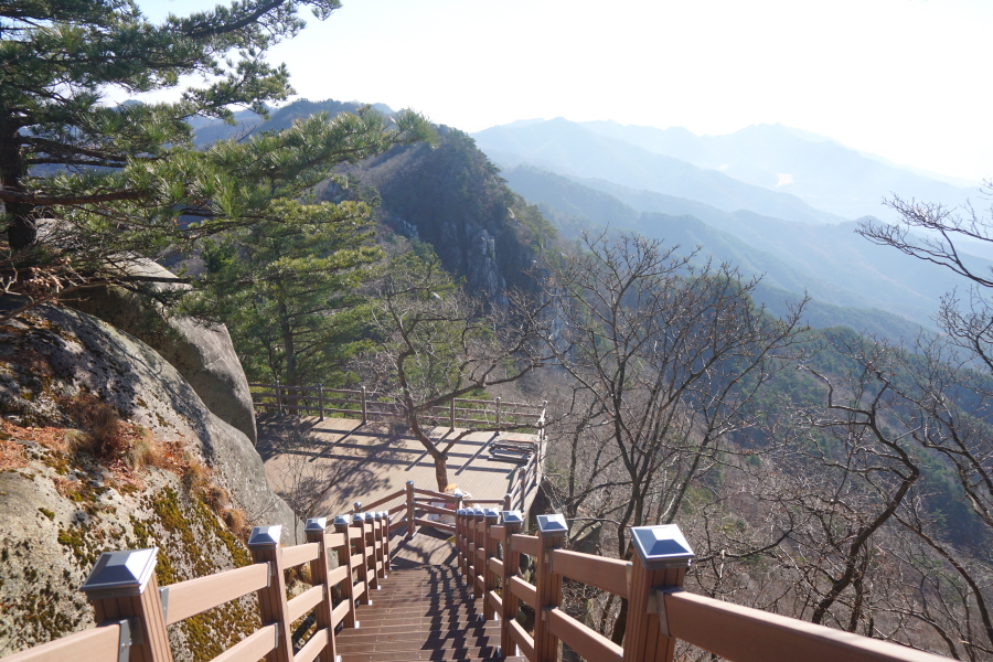 정면에 병풍바위가 보이는 전망대를 지나