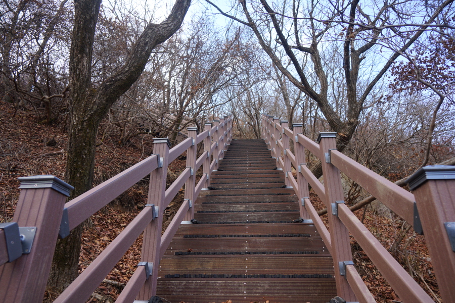 덱 구조물 2곳을 지나 철계단과 덱 계단을 내려간 뒤