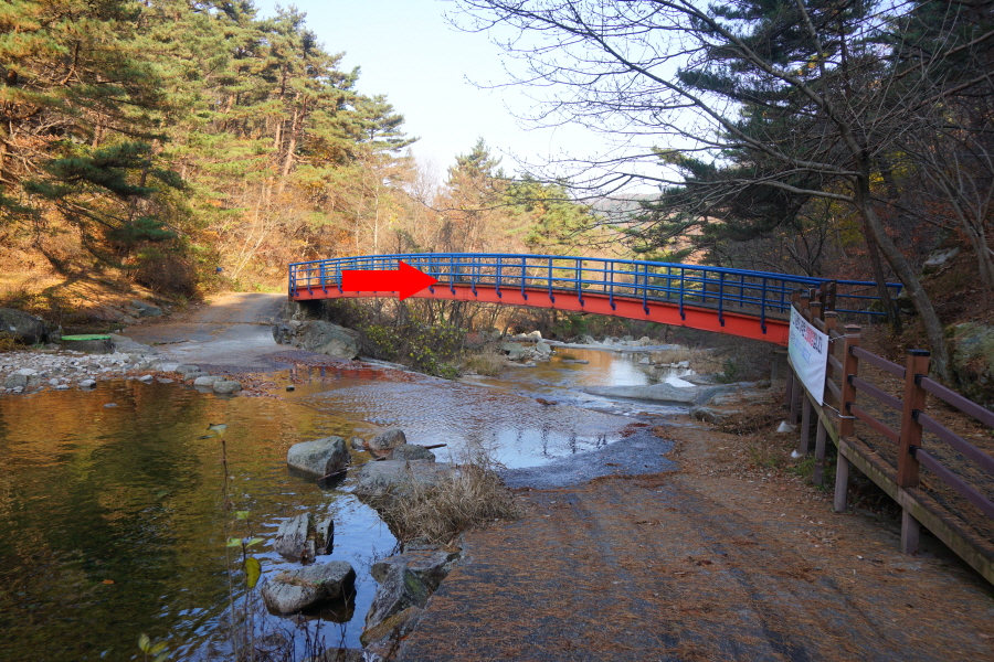 계곡에 놓인 철다리를 건너갑니다.