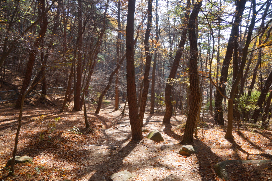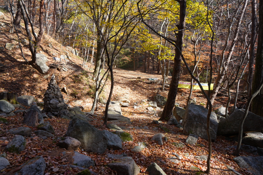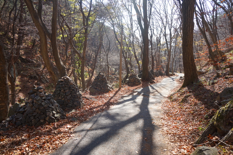 팔공산 산행은 대부분 남쪽인 대구와 영천 경산 칠곡 쪽에서 이루어집니다. 그에 반해 북쪽은 칠곡군 가산리에서 오르는 가산산성 코스와 군위군은 남산리에서 오르는 파계재 코스, 하늘정원을 오르는 ‘원효구도의 길’이 있습니다. 또한 영천시에는 치산계곡에서 오르는 동봉(1167m)과 신령재 코스인데 남쪽에 비해 등산로가 미미합니다. 그만큼 산행이 뜸한데 치산계곡만은 여름철 물놀이를 겸한 산행 코스로 많이 알려졌습니다. 그러나 가을이 끝나가는 요즘은 한적해 나 혼자만의 산행을 즐길 수 있습니다. 필자는 치산리에서 진불암을 거쳐 동봉에서 염불암으로 하산해 동화집단시설지구에서 마무리하는 팔공산 횡단 산행을 했습니다.