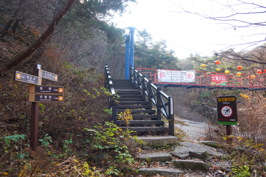 동봉(3.4㎞)·진불암(1.7㎞)은 오른쪽 다리를 건너갑니다.