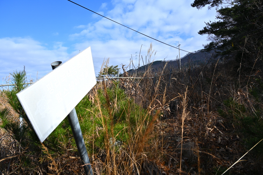 산불 지역을 벗어나면 산시이 안내판이 서 있는
