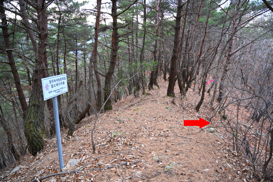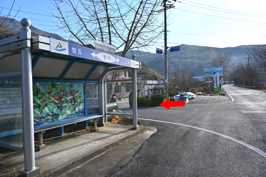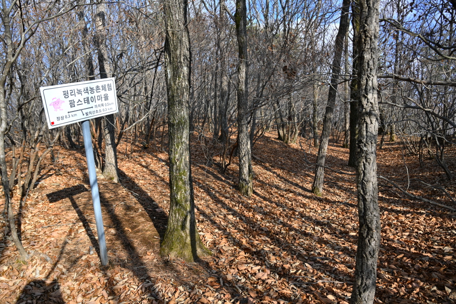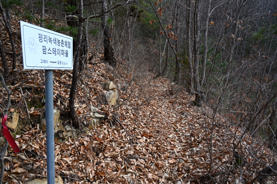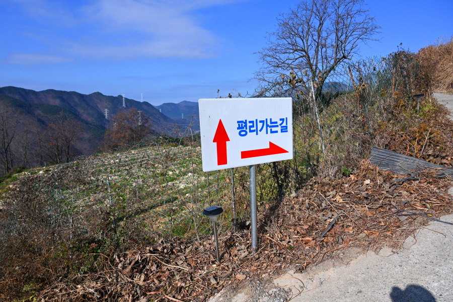 ‘평리마을 가는 길’ 안내판 갈림길에서