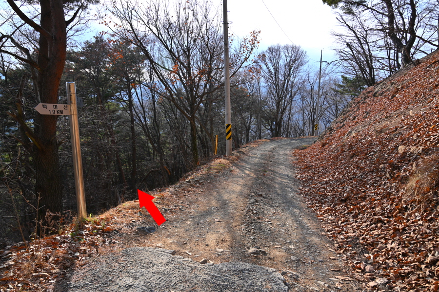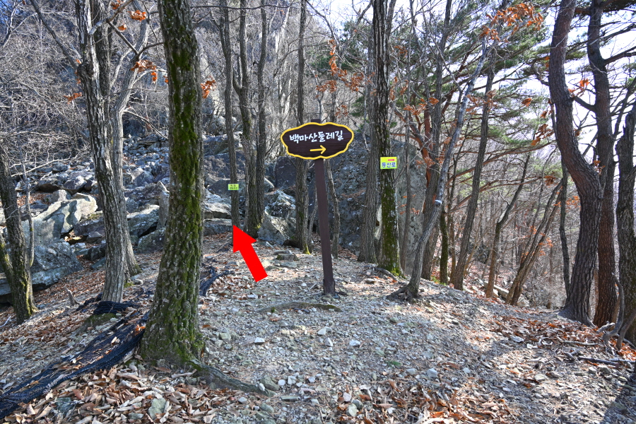 직진은 백마산 등산로(암벽등반) 방향.