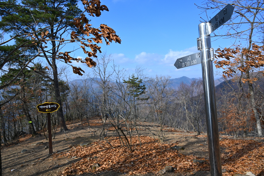 다시 능선을 타면 백마산 둘레길 안내판이 나옵니다.