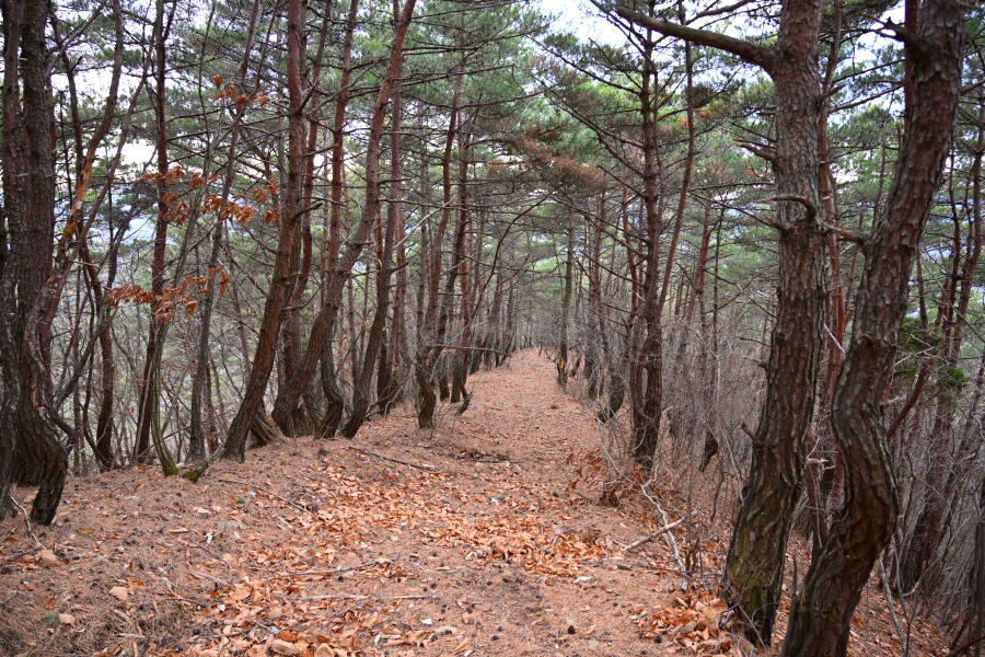가파른 산비탈 길을 왼쪽으로 비스듬하게 돌아