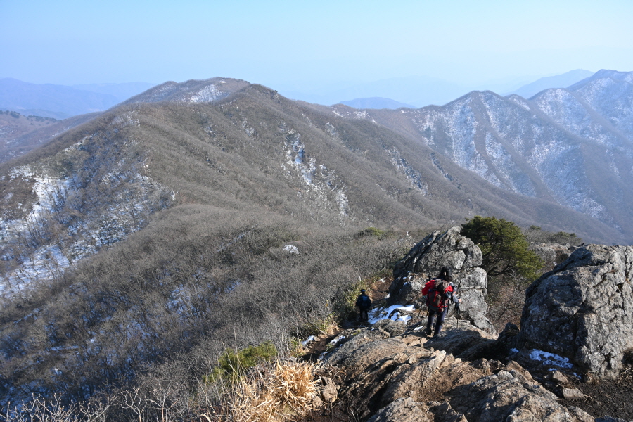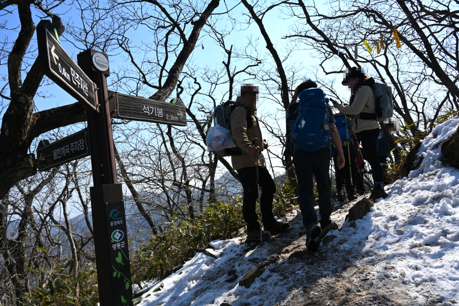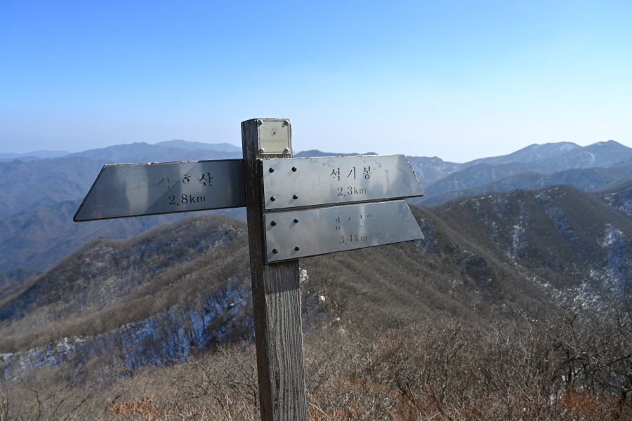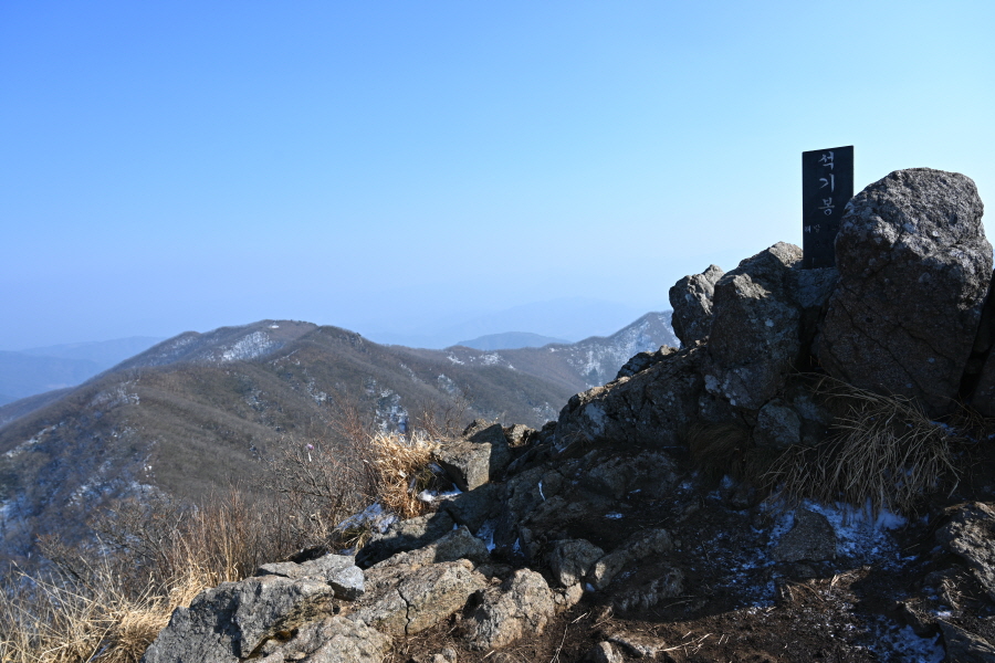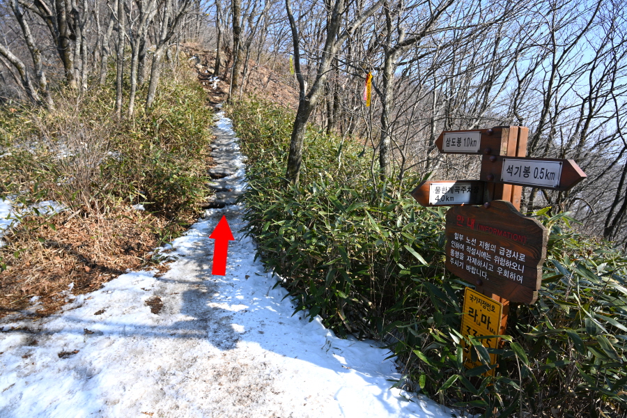 길이 험해 눈이 많은 겨울철에는 내려가지 않도록 합니다. 직진해 석기봉으로 20분 쯤 능선을 탑니다.